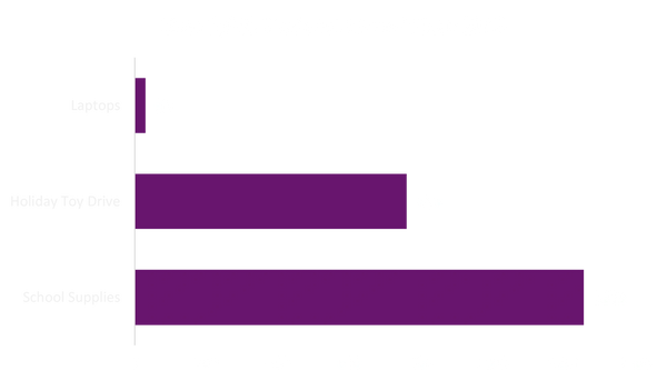 Learn Earn Return uses 99% of your donations to fund our mission. This means that 99% of your money goes towards purchasing school supplies, laptops, and holiday toys. Only 1% of your monetary donations are used to cover administrative expenses.